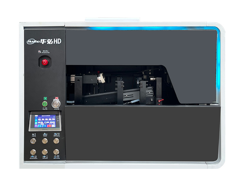 华弘优印新款小型桌面式高速圆柱uv打印机,可以打印白色彩色光油效果。